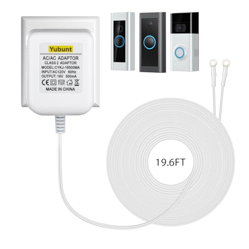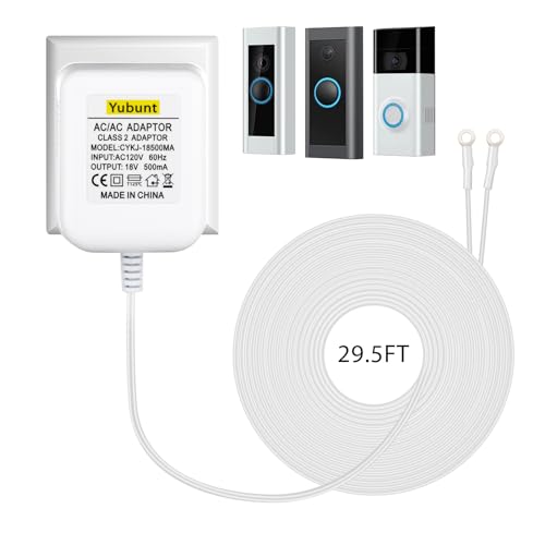 Yubunt 18V 500mA Doorbell Transformer, Video Doorbell Power Adapter Compatible with Nest, Wyze, Eufy, Ring, and Arlo Wireless Video Doorbells. White