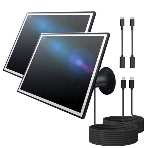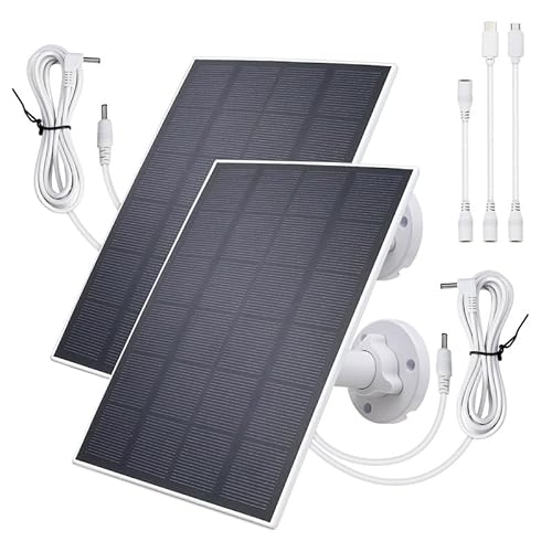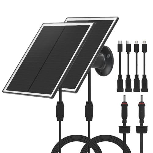 5V 3W Waterproof Solar Panel(2Pack) for Security Camera with 3.5MM Male and Elbow Cables & Type-C-Female Head & Micro-Female Head & Female to Female Cable